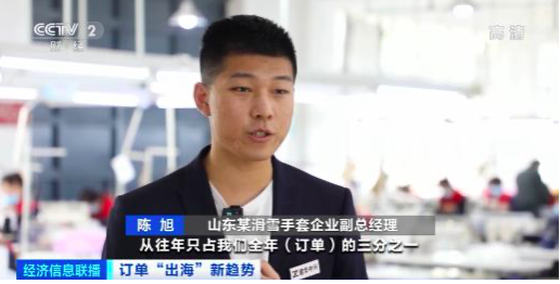 山東某滑雪手套企業(yè)副總經(jīng)理 陳旭:今年歐洲訂單比起往年有非常大的提升,從往年只占全年訂單的三分之一,到現(xiàn)在歐洲訂單已占到全年訂單的一半。